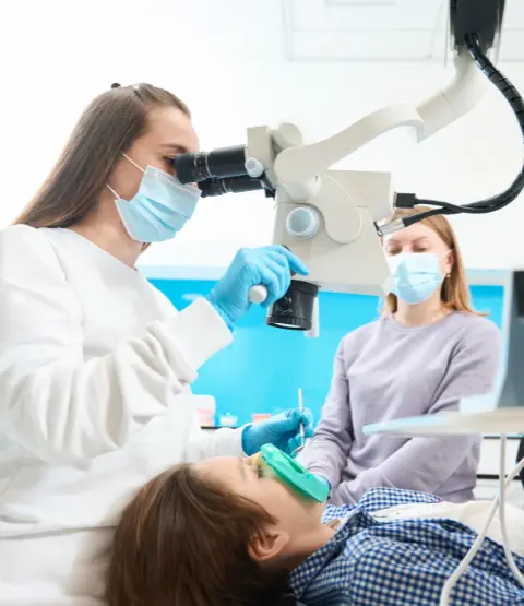 Coraz częściej leczenie odbywa się pod mikroskopem. Dzięki powiększeniu stomatolog widzi każdy detal: wąskie lub dodatkowe kanały, niewielkie resztki miazgi czy złamane fragmenty narzędzi. Leczenie w powiększeniu daje większą skuteczność i pozwala często zakończyć cały proces podczas jednej wizyty.